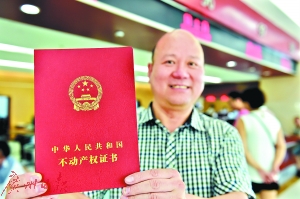 一市民領(lǐng)到不動(dòng)產(chǎn)權(quán)證書。 新華社發(fā)(呂斌攝)