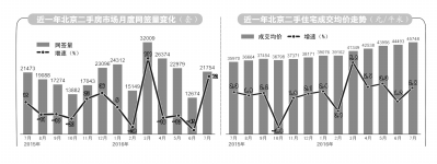 “除去技術(shù)層面的原因,6-7月北京二手房市場(chǎng)的整體趨勢(shì)仍然是‘降溫’?!眰I(yè)我愛(ài)我家集團(tuán)副總裁胡景暉分析,從6、7月的整體交易量來(lái)看,北京全市二手住宅網(wǎng)簽量?jī)H為36079套,與4、5月的網(wǎng)簽總量相比下跌了28.3%,跌幅近三成。6、7月的月均網(wǎng)簽量?jī)H有1.8萬(wàn)套,也明顯低于3月以來(lái)的月度網(wǎng)簽量。逐步降溫仍是北京二手房市場(chǎng)交易量在3月觸頂后的大趨勢(shì)。