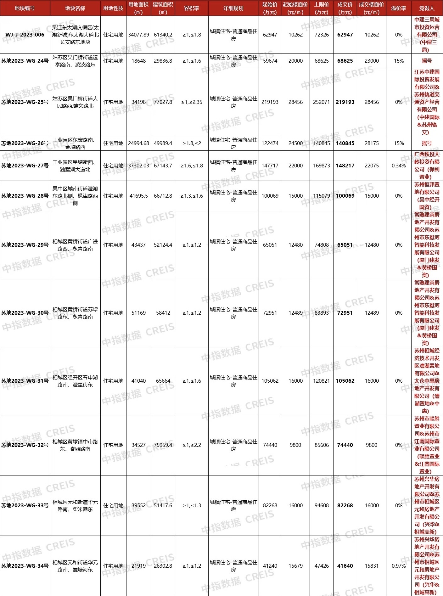 此外,相城區(qū)蘇地2023-WG-34號(hào)元和地塊由興華、相城高新聯(lián)合體以4.164億摘得,樓面價(jià)15679元/平方米,溢價(jià)率0.97%,占地面積2.2萬平方米,容積率1-1.2。