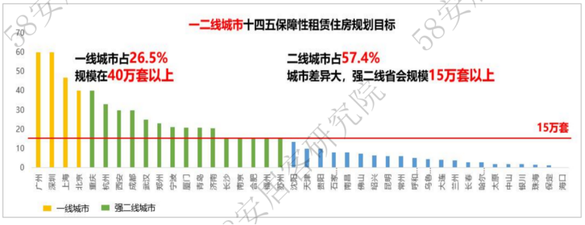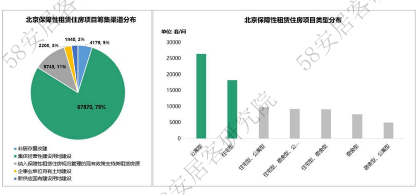 分城市來看,據(jù)58同城、安居客整理數(shù)據(jù)顯示,北京“十四五”期間,保障性住房供應(yīng)占新增住房供應(yīng)的比例達(dá)到52%。其中,保障性租賃住房規(guī)劃量最高,新增40萬套(間),占新增住房供應(yīng)比例達(dá)到40%。根據(jù)北京已披露保障性租賃住房項(xiàng)目情況,主要以集體經(jīng)營性建設(shè)用地新建為主,而公寓型產(chǎn)品最多。目前,已披露項(xiàng)目供應(yīng)集中于需求旺盛區(qū)域,如朝陽、豐臺(tái)、大興和通州。同時(shí),項(xiàng)目開發(fā)主體中,國企和集體所有制企業(yè)的項(xiàng)目占比約80%,參與民企主要為聚焦租賃業(yè)務(wù)的龍湖、城家。