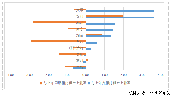 圖11 二線城市住房租金變動情況(%)