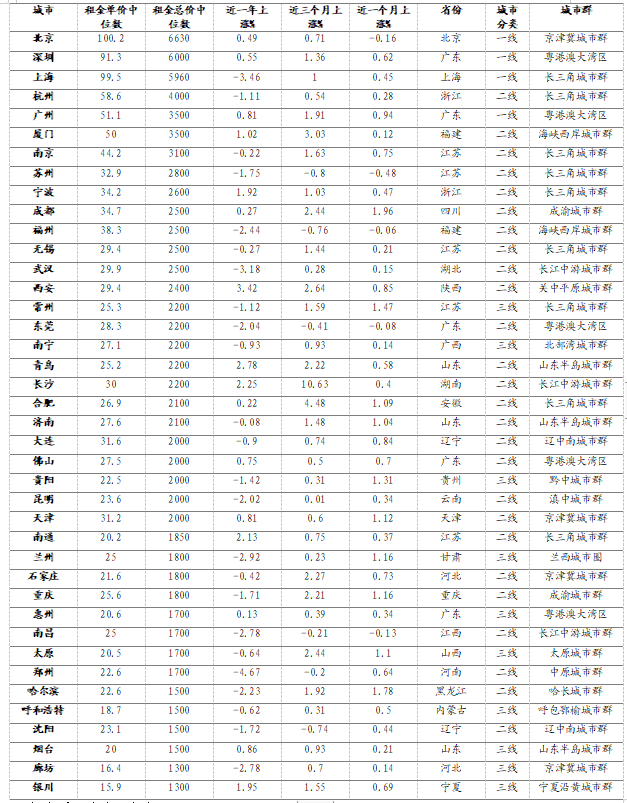2.租金水平相對平穩(wěn),二季度季節(jié)性小幅上漲,但上半年總體略低于去年同期租金水平
