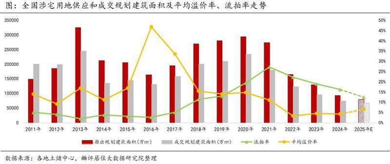 剛剛過去的2024年,全國土地市場供需兩端延續(xù)縮量態(tài)勢,溢價率低位徘徊,流拍率雖有下降但仍處于較高位。據機構統(tǒng)計,2024年全國住宅用地成交規(guī)模降幅超兩成,土地出讓金僅為2020年高點四成左右。聚焦高能級城市拿地投資,成為眾多房地產企業(yè)的共識。