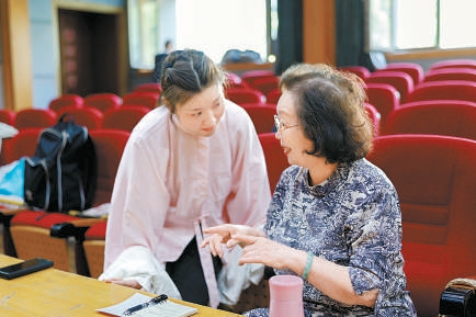 陳張霞《白蛇傳》劇照。?? 快到中午12時(shí),日頭高照,氣溫攀升,北京京劇院一間排練廳里,氍毹(qúshū)上的故事也走到了焦灼的頂點(diǎn):小青舉劍欲斬許仙,白素貞橫身于二人之間,又擋又護(hù),親情與愛(ài)情撕扯著,讓她左右為難……端午假期,北京京劇院《白蛇傳》將登臺(tái)國(guó)家大劇院。這幾天,陳張霞、包飛、張淑景、孟憲騰等主演正在著名京劇表演藝術(shù)家閻桂祥的親自指導(dǎo)下,為這部作品進(jìn)行最后的打磨。 閻桂祥坐在舞臺(tái)對(duì)面看了一會(huì)兒,又一次起身來(lái)到分別飾演白素貞、許仙、小青的陳張霞、包飛、張淑景面前?!艾F(xiàn)在是矛盾最激烈的時(shí)候,白蛇怕小青真的殺了許仙,一定得多哄著她,而對(duì)許仙,她又愛(ài),又忍不住責(zé)備。”閻桂祥給陳張霞示范起來(lái),轉(zhuǎn)身、舉手、眼神,處處流淌著悲傷而濃烈的深情,“你要配合許仙,要聽(tīng)他說(shuō)話,離得近點(diǎn),不能越唱越往后撤,也不能讓許仙只有背影對(duì)著觀眾。”陳張霞領(lǐng)悟得很快,水袖一揮,白蛇與許仙再次依偎對(duì)望,面向觀眾席的角度恰到好處,能讓觀眾清楚看到兩人眉梢眼角化不開(kāi)的愁緒與眷戀。 從情出發(fā)、以情動(dòng)人,顯然是陳張霞演繹的這版《白蛇傳》的突出特色。這一版本由她的恩師閻桂祥親授,4年前曾在梅蘭芳大劇院上演,許多觀眾看得潸然淚下?!拔矣X(jué)得,這跟老師的處理方式有很大關(guān)系,她在這部作品里運(yùn)用的感情非常多?!标悘埾颊f(shuō)?!栋咨邆鳌窔v來(lái)有過(guò)不少詮釋版本,閻桂祥年輕時(shí)看過(guò)劉秀榮、杜近芳、趙燕俠等多位大師呈現(xiàn)的版本,她博采眾長(zhǎng),加入了自己對(duì)角色、對(duì)故事的深刻理解。