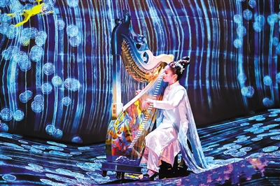 以往的音樂會(huì)中,觀眾是在固定位置坐著聽,而在沉浸音樂會(huì)《只此一夢(mèng)》上,現(xiàn)場(chǎng)的觀眾跟隨著指引不斷行進(jìn),從而開啟了一種新的聽音樂和逛展覽的模式。例如,《無窮無盡的水晶宇宙》本來就是北京teamLab無相藝術(shù)空間的網(wǎng)紅打卡點(diǎn),如水晶雨滴一般的視覺呈現(xiàn),配合琵琶叮咚如玉珠散落水晶盤中,竹笛聲悠揚(yáng)似鷓鴣穿飛瓊林苑里,正是玉樹瓊枝點(diǎn)點(diǎn)鳥,珠花盛開鷓鴣飛!《只此一夢(mèng)》沉浸音樂會(huì)是可以聽的畫面,是可以看的音符,觀眾與樂手可謂“零距離”。