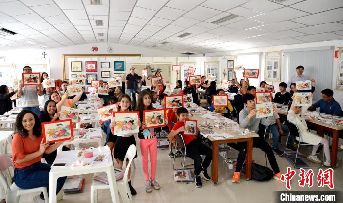 當(dāng)?shù)貢r(shí)間9月10日,天津楊柳青木版年畫博物館、巴西圣保羅華僑天主堂中文學(xué)校聯(lián)合舉辦年畫傳承研習(xí)活動。圖為巴西圣保羅研習(xí)活動現(xiàn)場。中新社記者 林春茵 攝