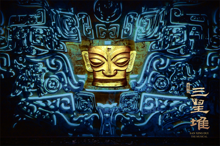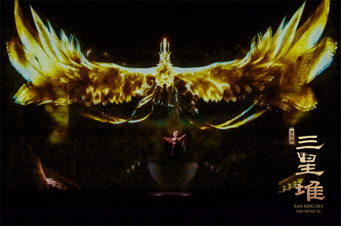 舞美設計由倫敦著名設計師摩根·拉知(Morgan Large)擔任,他曾獲2018年英國戲劇獎最佳設計獎和4次奧利弗獎、參與過《修女也瘋狂》《周日戀曲》等多部著名劇目舞美設計。舞美團隊不僅力圖在色彩和道具上還原三千年前青銅王朝的璀璨與輝煌,還通過兩百余臺電腦燈呈現(xiàn)不同場景的光影效果。觀眾將非常幸運地首次在音樂劇舞臺上,一次性看到青銅大立人、青銅大面具、青銅神樹等極具三星堆代表性文物的復刻版,加上極具沖擊力和感染力的多媒體技術,生動展現(xiàn)了三千年前古蜀國的璀璨與輝煌。