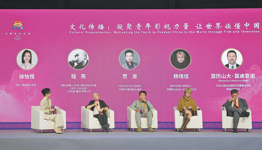 2024北京文化論壇以“文化傳播:凝聚青年影視力量 讓世界讀懂中國(guó)”為主題的文化沙龍舉辦。圖為以《影視青春化表達(dá)助力城市文化品牌建設(shè)》為主題的圓桌論壇。記者 程功攝