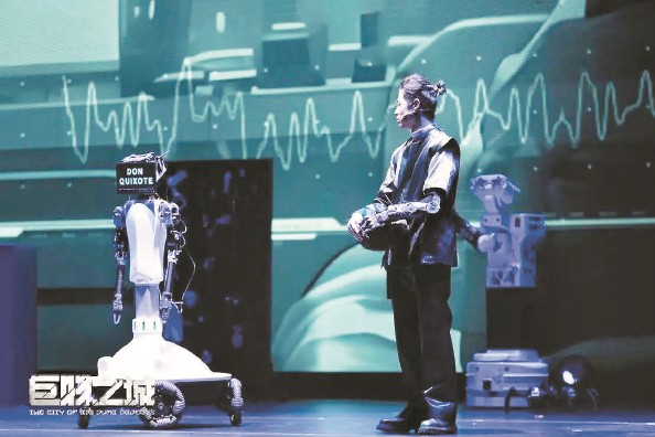這是國內(nèi)首部機(jī)器人戲劇《巨物之城》的演出現(xiàn)場(chǎng)。演員與機(jī)器人一同完成了80分鐘的表演,謝幕后,臺(tái)下觀眾涌上舞臺(tái),爭(zhēng)相與“堂吉訶德”“麒麟臂”“嵐”等機(jī)器人合影、問好。機(jī)器人——這個(gè)在日常生活中還頗為“遙遠(yuǎn)”的形象,第一次以情感表達(dá)者的身份,走近了普通觀眾。
