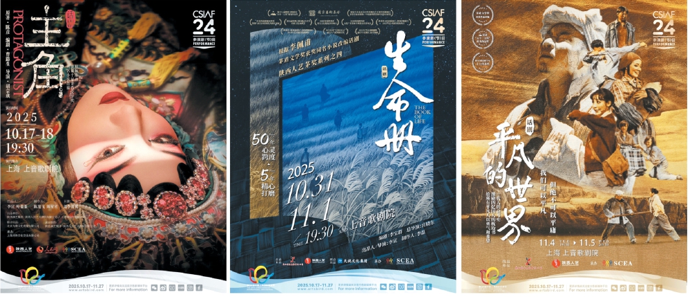 “茅獎系列”作品《主角》《生命冊》《平凡的世界》《白鹿原》以及“陳彥三部曲”《星空與半棵樹》五部大戲?qū)⒃谏弦舾鑴≡毫料唷D為部分演出海報。