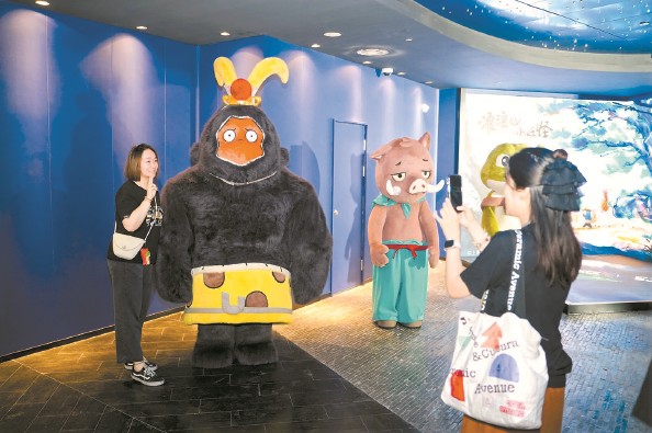 從走出軌交徐家匯站的那一刻起,“浪浪山”主題燈箱便接連映入眼簾,悄然揭開這個奇幻宇宙的序幕;美羅城商場球幕上的“小豬妖”頭像和“這條路走對了”的標(biāo)語,引人駐足眺望;走進(jìn)“大王洞”觀影,挑選三五周邊玩偶、精美文創(chuàng)產(chǎn)品,在360°環(huán)形劇場聽一場“浪浪山開放麥”,在“豬媽媽茶水站”來一杯飲料……這趟沉浸式體驗豐富而圓滿。