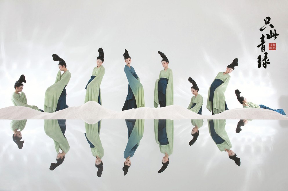 一舞一山河,一念一青綠?!吨淮饲嗑G》以傳世名畫《千里江山圖》為背景,通過“展卷、問篆、唱絲、尋石、習(xí)筆、淬墨、入畫”等篇章,帶領(lǐng)觀眾穿越千年,步入宋風(fēng)雅韻的山水幻境。舞劇融合肢體語匯與東方美學(xué),致敬中華文明及其創(chuàng)造者、傳承者,在青年群體中掀起“國(guó)風(fēng)熱潮”。“‘青綠’的成功,離不開中華優(yōu)秀傳統(tǒng)文化的深厚滋養(yǎng);‘青綠’的流行,充分體現(xiàn)了當(dāng)代年輕人對(duì)中華優(yōu)秀傳統(tǒng)文化的熱愛與追捧?!背銎贩街袊?guó)東方演藝集團(tuán)有限公司副總經(jīng)理、董事張蕾說。