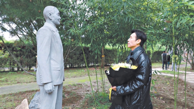 于和偉代表主創(chuàng)團(tuán)隊向吳石烈士敬獻(xiàn)鮮花