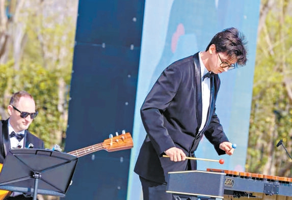 奧西波夫國立模范青年獨奏家民族室內(nèi)樂團(tuán)在綠心露天劇場演出。記者方非 攝