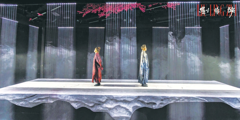 《霸王別姬》全劇圍繞虞姬、呂雉、項羽等主要角色,向傳統(tǒng)文化深度取材,卻不囿于贅述舊事?!啊栋酝鮿e姬》解構(gòu)了原劇本的線性敘事,嘗試在歷史典故中尋找能夠訴諸當(dāng)代的敘事角度。”導(dǎo)演林叢說,由歷史觀照當(dāng)下,《霸王別姬》想象著被歷史掩埋的兩個女人的對話,意在展開現(xiàn)代人對愛情與權(quán)力、家國命運(yùn)與個體選擇、自我認(rèn)知的成長與轉(zhuǎn)變的審視。