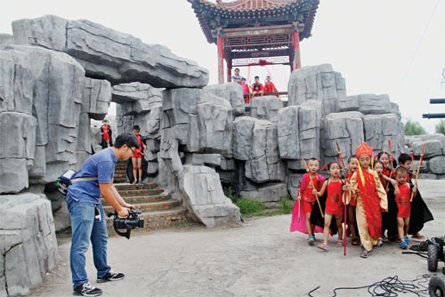 8月18日,原平市白路口才主持藝術(shù)班的小學(xué)員出演的魔幻微電影《大戰(zhàn)紅孩兒》在該市牛臥河公園開機(jī)。此次演出活動目的是培養(yǎng)孩子的想象力、幽默感,同時提高他們在演藝方面的能力與藝術(shù)修養(yǎng),讓他們擁有積極健康的心態(tài),敢于表現(xiàn)自我、挑戰(zhàn)自我、超越自我,在生活、學(xué)習(xí)上打下良好基礎(chǔ)。據(jù)了解,影片制作完成后將在優(yōu)酷等網(wǎng)絡(luò)進(jìn)行播放。