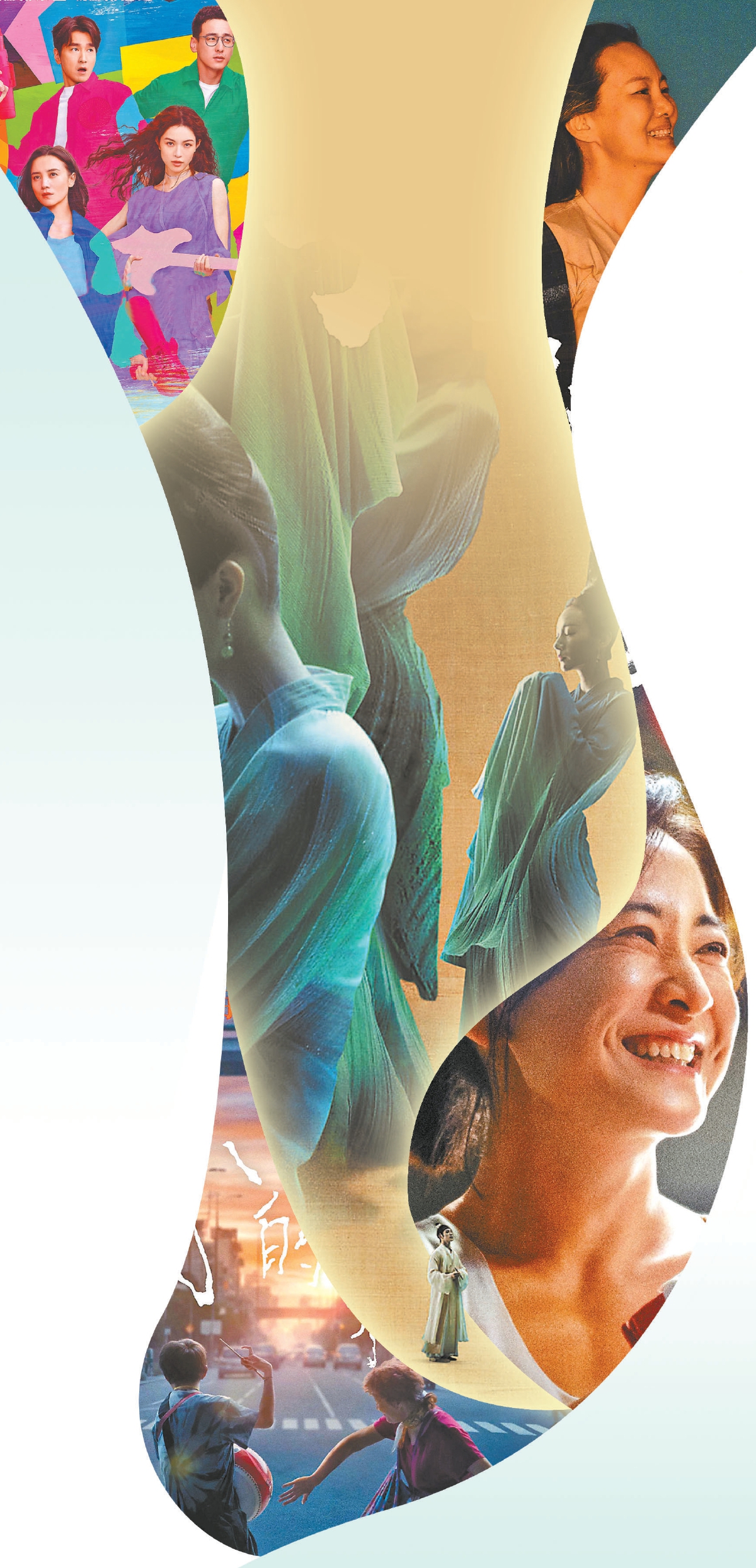 張?jiān)5褜?dǎo)演的《倒倉》將傳統(tǒng)京劇與青春成長相結(jié)合,“倒倉”既是戲曲演員在變聲期的必經(jīng)之路,也是少年們在面對未來時(shí)的迷惘。故事在對傳統(tǒng)的繼承中突破,男可扮旦角,女可唱老生,每個(gè)人的人生都由自己掌握。周莉亞、韓真執(zhí)導(dǎo)的《只此青綠》將舞蹈詩劇這一小眾藝術(shù)推向大眾市場,利用鏡頭、實(shí)景、特效等電影手法讓更多觀眾認(rèn)識(shí)了天才少年希孟和他筆下的《千里江山圖》,影片也呈現(xiàn)出一幅鮮活生動(dòng)的北宋人文圖景。在楊圓圓導(dǎo)演的紀(jì)錄片《女人世界》中,跳著Cha- Cha的美籍華裔老年舞團(tuán),每個(gè)人身上都散發(fā)出自信、明媚、積極的生命力。影片用“她92歲,仍年輕”形容舞者余金巧,既有歷盡千帆后的無畏,也有活在當(dāng)下的愜意與灑脫。