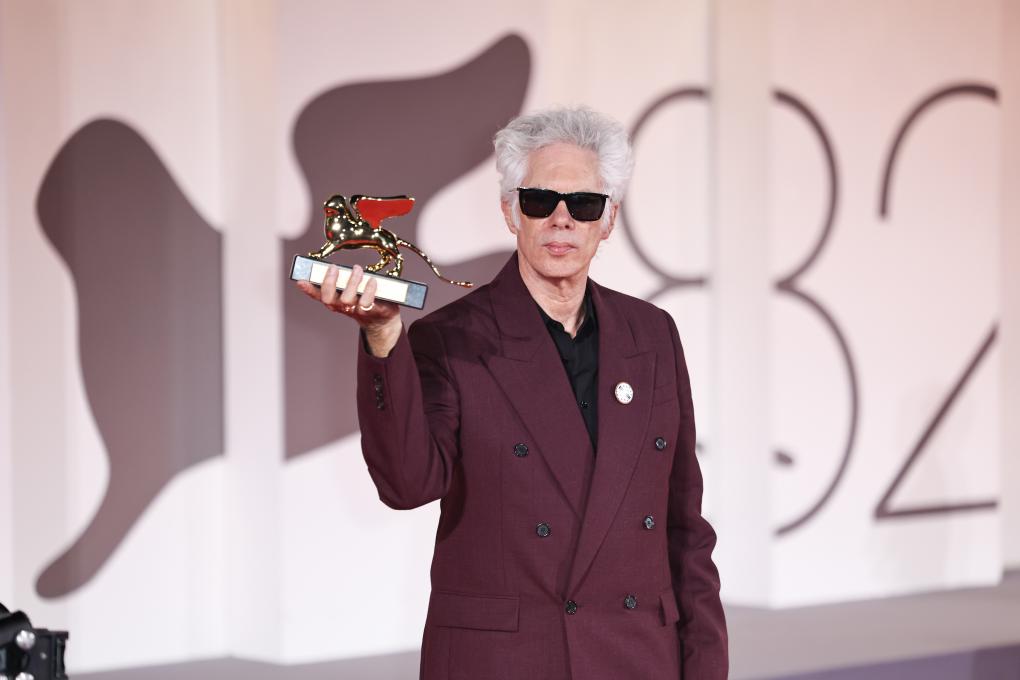 9月6日,在意大利威尼斯,最佳影片金獅獎《父母姐弟》的導演吉姆·雅穆施與獎杯合影。新華社記者 李京 攝