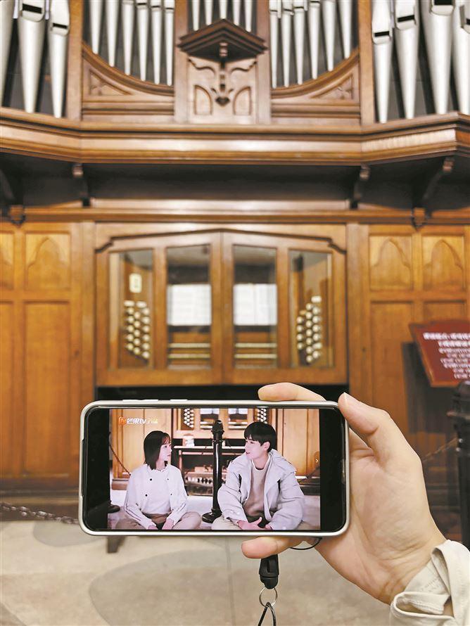 來鼓浪嶼打卡的游客將劇照和現(xiàn)場對(duì)比,拍照留念。