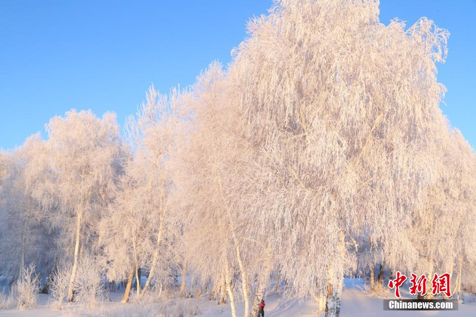 連日來,新疆阿勒泰地區(qū)遭遇十年來罕見強降雪,雪后初霽,氣溫漸降。1月4日,受超低溫天氣的影響,阿勒泰哈巴河白樺林出現(xiàn)大面積霜掛美景,晶瑩剔透,潔白無瑕,銀裝素裹,成為一道道美麗的風景線。 謝師民 攝
