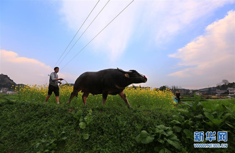 2月17日,貴州凱里,村民楊漢山趕著水牛去耕田。早春時(shí)節(jié),隨著氣溫回升,各地春意漸濃。 新華社發(fā)(吳吉斌 攝)