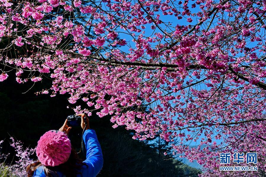 2月29日,游客在武陵農(nóng)場賞花。初春的臺(tái)灣,氣溫回升,位于海拔1700多米的臺(tái)中武陵農(nóng)場,漫山遍野的櫻花競相開放,美不勝收,吸引了四面八方的游客前來觀賞。 新華社記者張國俊 攝