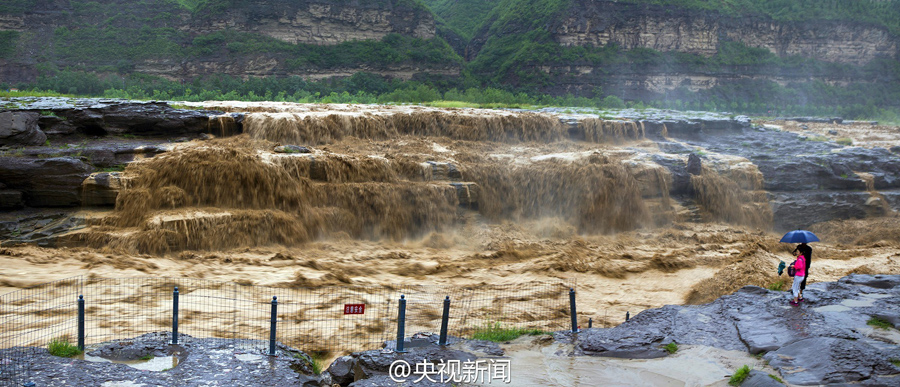 受上游強降雨和水庫放水影響,最近幾天,黃河壺口瀑布迎來伏汛,最大水流量達到每秒2600立方米左右,濁流滾滾奔騰而下,氣勢磅礴!(央視記者李志 文豪)