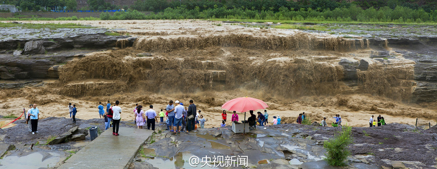 受上游強(qiáng)降雨和水庫(kù)放水影響,最近幾天,黃河壺口瀑布迎來(lái)伏汛,最大水流量達(dá)到每秒2600立方米左右,濁流滾滾奔騰而下,氣勢(shì)磅礴?。ㄑ胍曈浾呃钪?文豪)