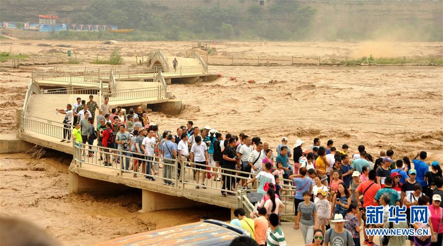 近日,受上游地區(qū)強(qiáng)降雨天氣影響,位于山西吉縣和陜西宜川縣交界的黃河壺口瀑布水量大漲。目前,壺口景區(qū)已啟動應(yīng)急預(yù)警,工作人員加強(qiáng)上游水情監(jiān)測并加大安全巡查力度,確保游客安全。新華社發(fā)(呂桂明 攝)