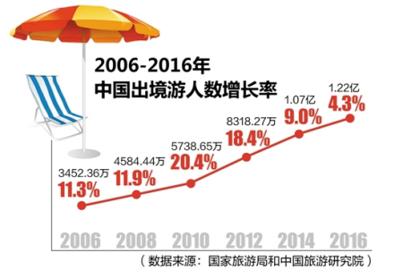 2017年春節(jié)假期,615萬國人到世界各地歡度新春佳節(jié),創(chuàng)出了出境游歷史新高,引來世界矚目。實際上,早在2011年,中國已成為世界第一大客源國,2014年出境游人次首次破億,2016年更是達到了1.22億人次。這一數(shù)字相當于我國人口數(shù)量前七位的重慶、上海、北京、成都、天津、廣州、保定的總和,也接近目前日本的總人口數(shù)。