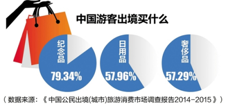 中國游客“買買買”名聲已傳遍全球。LV、Chanel、Hermes、PRADA、Rolex,這些奢侈品名牌服飾、手表店,隨處可見國人身影。而近年來,高端日用品也異軍突起,馬桶蓋、牙膏、電飯煲,甚至鍋碗瓢盆,這些國外超市貨柜上的商品同樣吸引著中國游客。根據(jù)《中國公民出境(城市)旅游消費市場調查報告2014-2015》,近八成的中國游客在境外旅行時會買紀念品,一半的游客會購買日用品,與購買奢侈品的游客比例持平。
