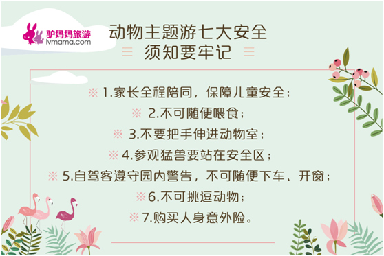 王小松表示,清明假期將至,又是家長帶孩子們逛動物園的高峰期。動物主題游有七大安全須知要記牢:1、家長全程陪同,保障兒童安全;2不可隨便喂食;3不要把手伸進動物室;4、參觀兇猛動物要站在安全區(qū);5、自駕客遵守園內(nèi)警告,不可隨便下車、開窗;6、不可挑逗動物;7、購買人身意外險。