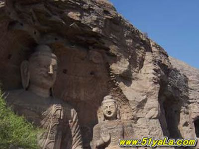 1.云岡石窟 是中國四大石窟之一。其他三大石窟是:敦煌莫高窟、龍門石窟和麥積山石窟。 云岡石窟位于山西省大同市以西16公里處的武周山南麓。石窟始鑿于北魏興安二年(公元453年),大部分完成于北魏遷都洛陽之前(公元494年),造像工程則一直延續(xù)到正光年間(公元520~525年)。石窟依山而鑿,東西綿亙約1公里,氣勢恢弘,內(nèi)容豐富。現(xiàn)存主要洞窟45個,大小窟龕252個,石雕造像51000余軀,最大者達(dá)17米,最小者僅幾厘米??咧衅兴_、力士、飛天形象生動活潑,塔柱上的雕刻精致細(xì)膩,上承秦漢(公元前221年~公元220年)現(xiàn)實主義藝術(shù)的精華,下開隋唐(公元581~907年)浪漫主義色彩之先河,是世界聞名的石雕藝術(shù)寶庫之一。1961年國務(wù)院公布為全國重點文物保護(hù)單位,2001年被列為世界文化遺產(chǎn)。