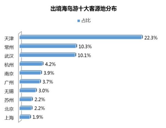 出境海島游客源集中在一線、二線城市,國內(nèi)海島游客源相對分散