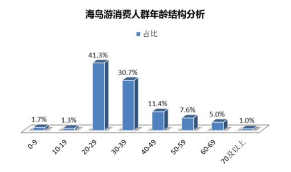 《報告》基于同程旅游最近一年的海島游消費用戶數(shù)據(jù)所做的分析顯示,20至39歲這一年齡層占比超過七成,是海島游的核心消費人群。另外,19歲以下人群占比3%,其中0-9歲占比1.7%,表明親子家庭已經(jīng)成為海島游的重要客群。