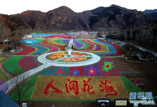 從空中俯瞰北京市密云區(qū)車道峪村用風車打造的“人間花?!敝黝}景觀(12月5日攝)。近日,北京市密云區(qū)車道峪村村民用約120萬只風車,打造出一片占地500畝的“風車?!?,包含多個主題。該景觀于12月8日正式亮相。新華社記者 羅曉光 攝