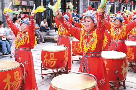 8月8日,“逛古城、品文化、識(shí)忻州”忻州古城代縣文化旅游招商推介宣傳促銷月主題活動(dòng)進(jìn)入第二周。8日至9日來,來自棗林鎮(zhèn)和上磨坊鄉(xiāng)的民間文藝展演隊(duì)伍為廣大市民和游客帶來了獨(dú)具特色的文藝節(jié)目。楊家將武術(shù)、戰(zhàn)鼓、花車、旱船、秧歌等喜慶歡騰、富有雁門特色的“拿手好戲”在南北大街、南城門廣場和代縣主題展廳前輪番上演,身著華服、精心裝扮、光鮮亮麗的展演隊(duì)伍扭得賣力、演得火熱,為廣大市民和游客奉獻(xiàn)了一道營養(yǎng)豐富的周末文化大餐,贏得了現(xiàn)場觀眾的熱烈掌聲和激情點(diǎn)贊。觀看完文藝展演節(jié)目后,市民和游客扶老攜幼、三五成群地走進(jìn)代縣主題展廳,近距離欣賞代縣的書法、繪畫、面塑、剪紙、葫蘆烙畫等非遺展陳,進(jìn)一步感知代州文化的無窮魅力。溫 琪 攝