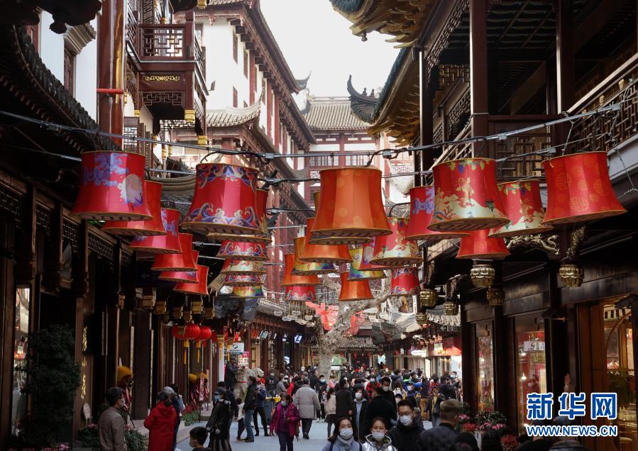 春節(jié)將至,上海豫園張燈結(jié)彩,吸引市民和游客前來游園、觀燈、買年貨,年味漸濃。