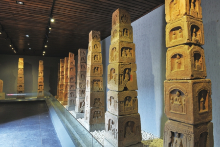 走進長治市博物館,仿佛進入了歷史的長廊,從創(chuàng)世之初、石之美者、塑土成陶、晶玉之瓷到吉金佳器,5個單元的館內(nèi)陳列展覽盡顯了長治古老的文明。其中的“創(chuàng)世之初”主要反映早期人類在長治地區(qū)的生產(chǎn)生活痕跡。展品有義和、花坡兩處舊石器時代文化遺址和多處新石器時代文化遺址,表明了長治是中華文明的早期發(fā)祥地之一。“石之美者”陳列的玉石雕琢而成的器物,主要出土于西周、春秋、戰(zhàn)國墓葬中,種類豐富,精美非凡。多為祭祀、禮儀、裝飾、陳設(shè)用品,有極高的歷史價值和藝術(shù)價值。“塑土成陶”展陳的文物主要是陶器,從新石器時代遺址中出土的體現(xiàn)“龍山文化”特色的陶器,到商代、漢代,直至隋唐之際的陶器,時間跨度非常之大。種類涵蓋飲食器、貯藏器等生活實用器和專為殉葬而制作的各類明器。尤其是用作明器的三彩陶器,凡與死者在世生活有關(guān)的如建筑、家具、牲畜和人物等無不具備,包羅萬象,真實再現(xiàn)了當時各個階層人士的不同生活面貌?!熬в裰伞闭龟惖挠兴宕那啻善鳌⑻拼陌状?,以及宋、金、元代的瓷器。據(jù)介紹,珍藏的宋、金、元時期瓷器品種數(shù)量多,南、北窯系均有,主要以霍州窯和磁州窯系列為主,其中,長治的八義窯(磁州窯系)生產(chǎn)的紅綠彩瓷是我國北方地區(qū)較具特色的釉上彩瓷?!凹鸺哑鳌闭故镜膭t是青銅器,以商、周器物為主。長治出土的商代器物與二里崗、殷墟時期銅器風(fēng)格一致,表明了晉式銅器的精美藝術(shù)造型和高超的工藝水平。