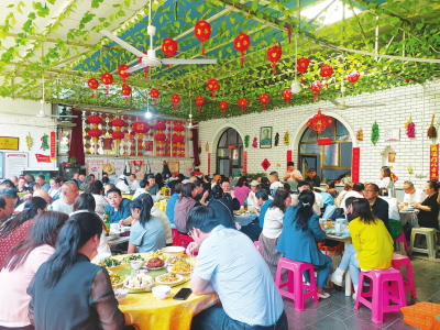 “上午游覽完太行洪谷和紅色體驗基地,中午專程慕名到他家吃銅火鍋。你看這兒,吃火鍋連風扇都不用開,而且食材地道,味道正宗,吃著過癮。”帶全家來南陽村游玩的晉城市民趙先生一邊大快朵頤,一邊美滋滋地說。