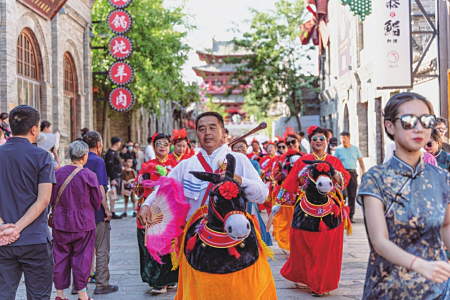 輕煮時(shí)光慢煮茶,三五好友聚一堂,在美食云集的小吃街,品一品忻州雜糧美食,擇一處院落嘗一嘗農(nóng)家樂的特色滋味。在茶樓聽?wèi)虼蚺?、談笑風(fēng)生,各路好戲連連上演,帶著邊塞風(fēng)骨,唱得淋漓盡致。著一席漢服漫步街巷,無須矯揉造作,也無須刻意擺拍,一顰一笑皆入畫,綠意的古城總有一種風(fēng)景值得駐足。剪紙、面塑、陶藝……集結(jié)忻州非遺傳承人,復(fù)蘇古城記憶,老忻州的手作與現(xiàn)代文創(chuàng)在這里交融扎根,民間藝術(shù)在這里生生不息。忻州古城的市集生活總上演著不同的精彩,新潮好玩的潮樂市集、紅火熱鬧的南門市集、充滿故事的古玩市集,在這里可以邂逅心頭好物,遇見不同的生活與態(tài)度。