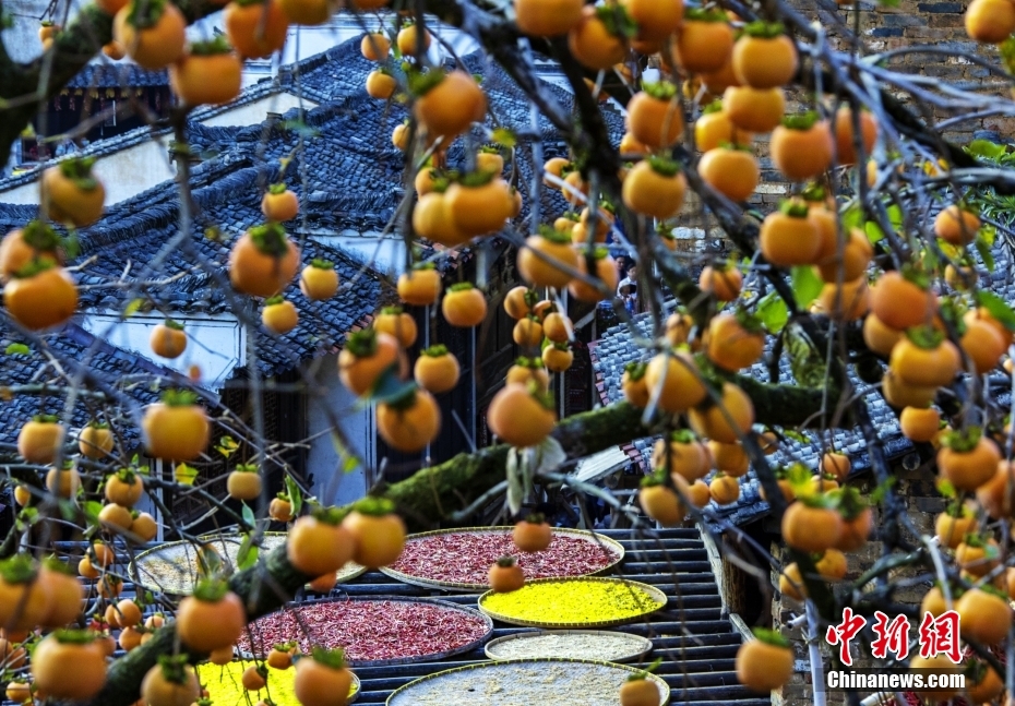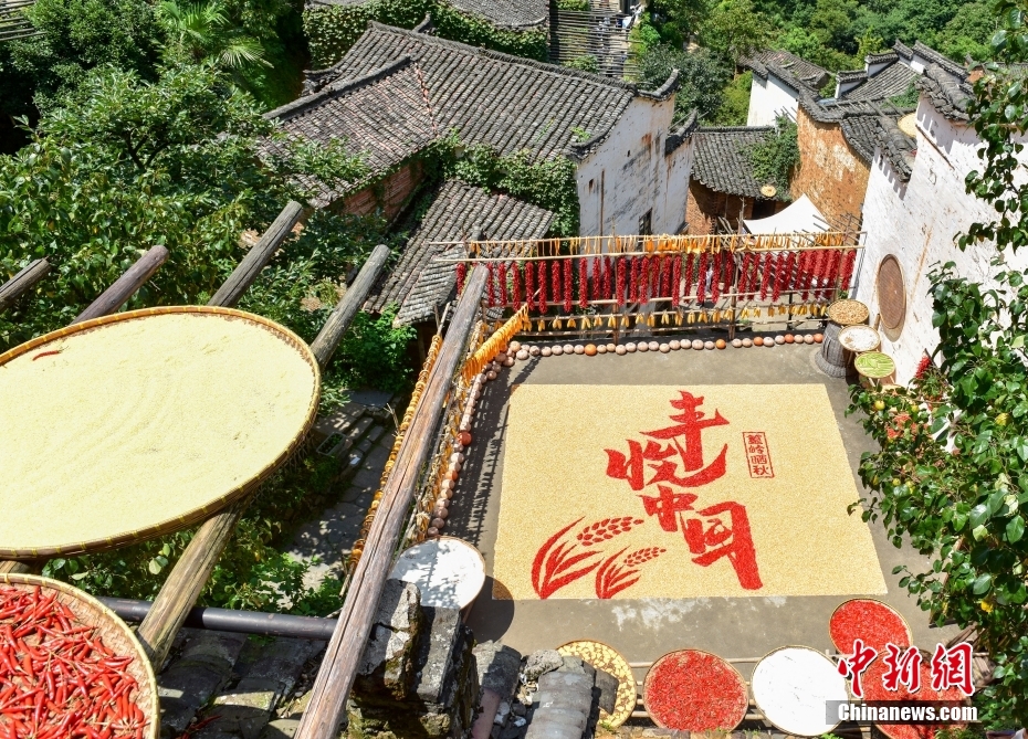 由于婺源的大多村莊是依山而建,平地較少,為將晾曬的食材安排的合理妥當(dāng),家家戶戶都展現(xiàn)了自家“空間管理”的高超技巧。圖為江西上饒婺源篁嶺古村,篁嶺獨(dú)具古韻的閣樓人家,處處可見(jiàn)絢爛的曬秋。稻谷、玉米、南瓜、豌豆、蘿卜曬在竹匾上,用橫木托著。