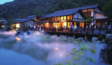 也許人們對江西葛仙村真實的模樣知之甚少,但葛仙村度假區(qū)并不因此而黯淡,它更樂于在云水深處、在桃源林里,遠(yuǎn)離紛爭。如用詩詞來概括度假區(qū)之環(huán)境、情境、意境,那就是:仙山仙谷臥仙村,仙居仙閣停仙云。仙翁仙子尋仙樂,仙池仙境歸仙魂。