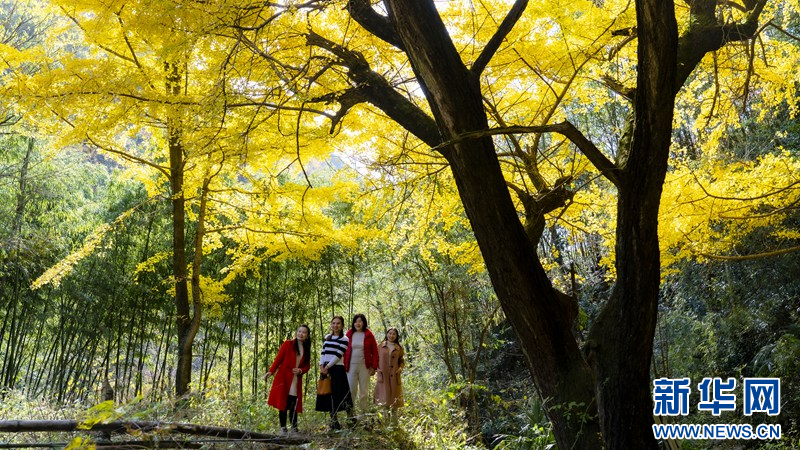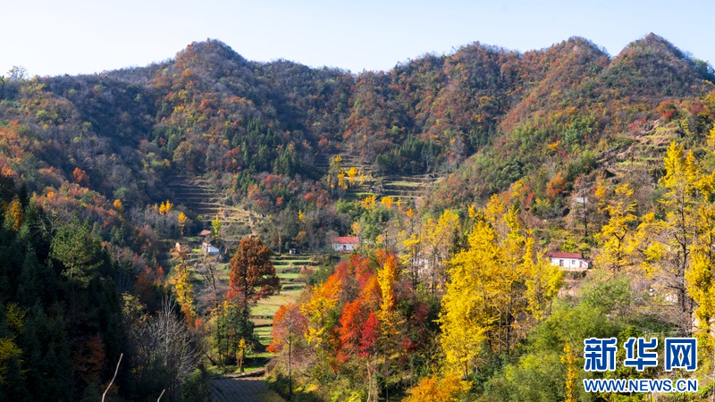 ?初冬,金色的陽(yáng)光灑在湖北省南漳縣李廟鎮(zhèn)的山林中,宛如大自然無(wú)意中打翻了調(diào)色盤,呈現(xiàn)出紅色、金色、綠色交織的絢麗色彩,美如一幅幅畫卷。(華君、 劉思)