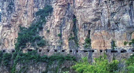 在太行山脈的晉豫交界帶,是我國第一階梯和第二階梯的分界線。在山脈的東西兩側(cè),地勢險(xiǎn)要,垂直落差極大,形成了一座座筆直陡峭的懸崖絕壁,也構(gòu)造了大自然鬼斧神工的絕佳壯美奇景,卻也因此地形阻礙了大山居民的出行之路,千百年來的大山人民過著與世隔絕的生活。到了20世紀(jì)五六十年代,大山的居民們以愚公移山的精神,克服重重苦難,在懸崖峭壁上一錘一斧開出了一條條連接大山與外界的“掛壁公路”。