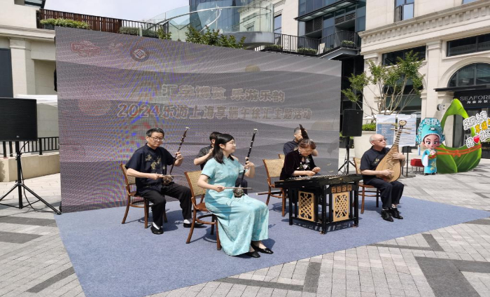 6月8日,非遺項(xiàng)目江南絲竹亮相上海市徐匯區(qū)衡山路8號(hào)廣場(chǎng)空間。新華社記者 陳愛平 攝