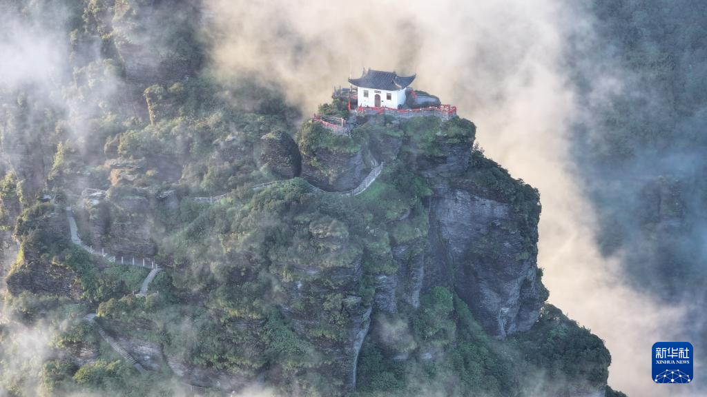 7月15日在貴州梵凈山老金頂拍攝的云霧景觀(guān)(無(wú)人機(jī)照片)。