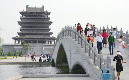 永濟(jì)鸛雀樓位于晉秦豫三省交界,王之渙因樓而詠“白日依山盡,黃河入海流”,鸛雀樓因詩而名顯天下。