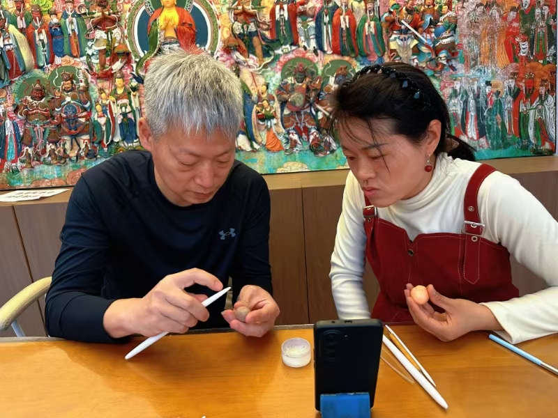 “在這條街上,聚集了很多和我一樣的手藝人?!贝蠛C嫠芩诘年P(guān)帝廟北巷文創(chuàng)街上,一家家非遺店鋪林立——葫蘆烙畫店鋪內(nèi),忻州市忻府區(qū)葫蘆烙畫非物質(zhì)文化遺產(chǎn)代表性傳承人李云珍正手拿烙鐵在葫蘆上創(chuàng)作《八駿圖》;“草木染”非遺體驗(yàn)店里,有游客在體驗(yàn)扎染的樂趣;鋦藝?yán)?,游客圍在忻州市忻府區(qū)鋦瓷藝術(shù)非物質(zhì)文化遺產(chǎn)代表性傳承人王克劍身邊,看一件破碎的瓷器如何經(jīng)過他的雙手重生……