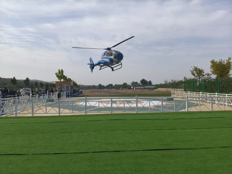洪洞縣廣勝寺飛行基地,直升機(jī)起飛。洪洞縣國(guó)有資本投資運(yùn)營(yíng)有限公司供圖